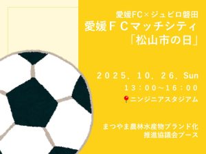 トップ 新着情報 ★愛媛FC vsジュビロ磐田★ マッチシティ「松山市の日」にブース出展します! ★愛媛FC vsジュビロ磐田★ マッチシティ「松山市の日」にブース出展します! 2025/10/24イベント 10月26日(日)にニンジニアスタジアムで開催される 『愛媛FCマッチシティ「松山の日」』に、 まつやま農林水産物ブランド化推進協議会がブース出展します! 詳しくはこちら♪ ぜひお越しください! ◆ブース出展日時 令和7年10月26日(日)13:00~16:00 ※キックオフは16:00~ ◆場所 ニンジニアスタジアム スタジアム前芝生広場 (松山市上野町乙46) 一覧に戻る